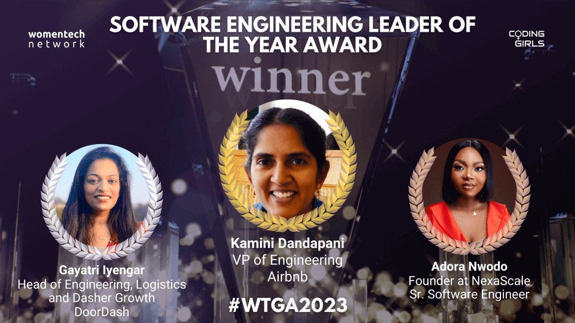 Congrats to Adora Nwodo for winning the Software Engineering Leader of the Year award from the WomenTech Network. See tweet for more details!