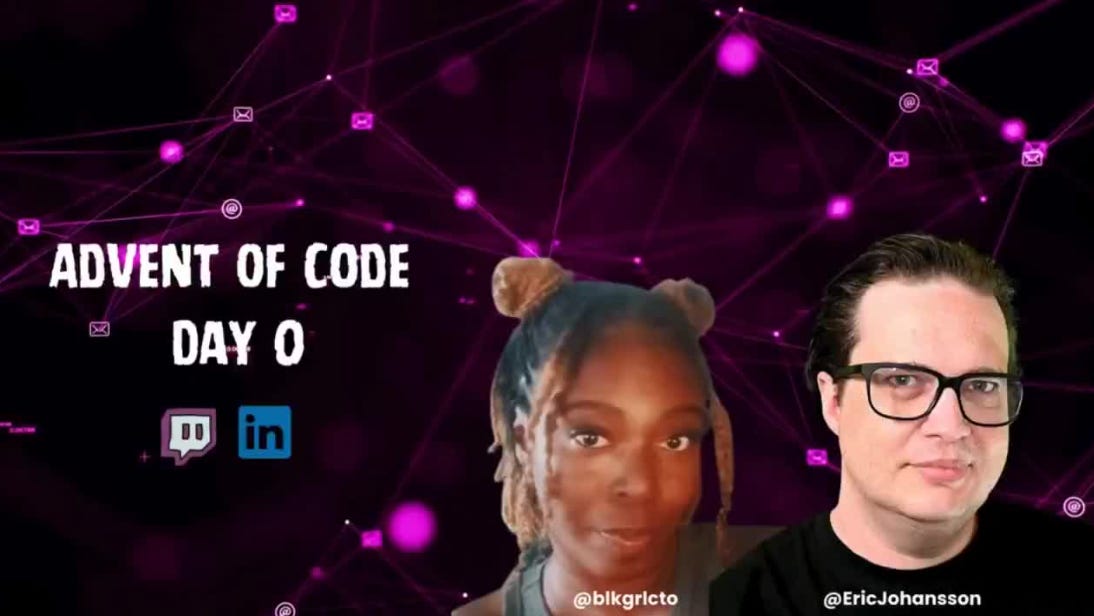 ‘Tis the season 🎄! Advent of Code has begun, and Kiah Tolliver is streaming her daily progress. Watch the VOD for Day 0!